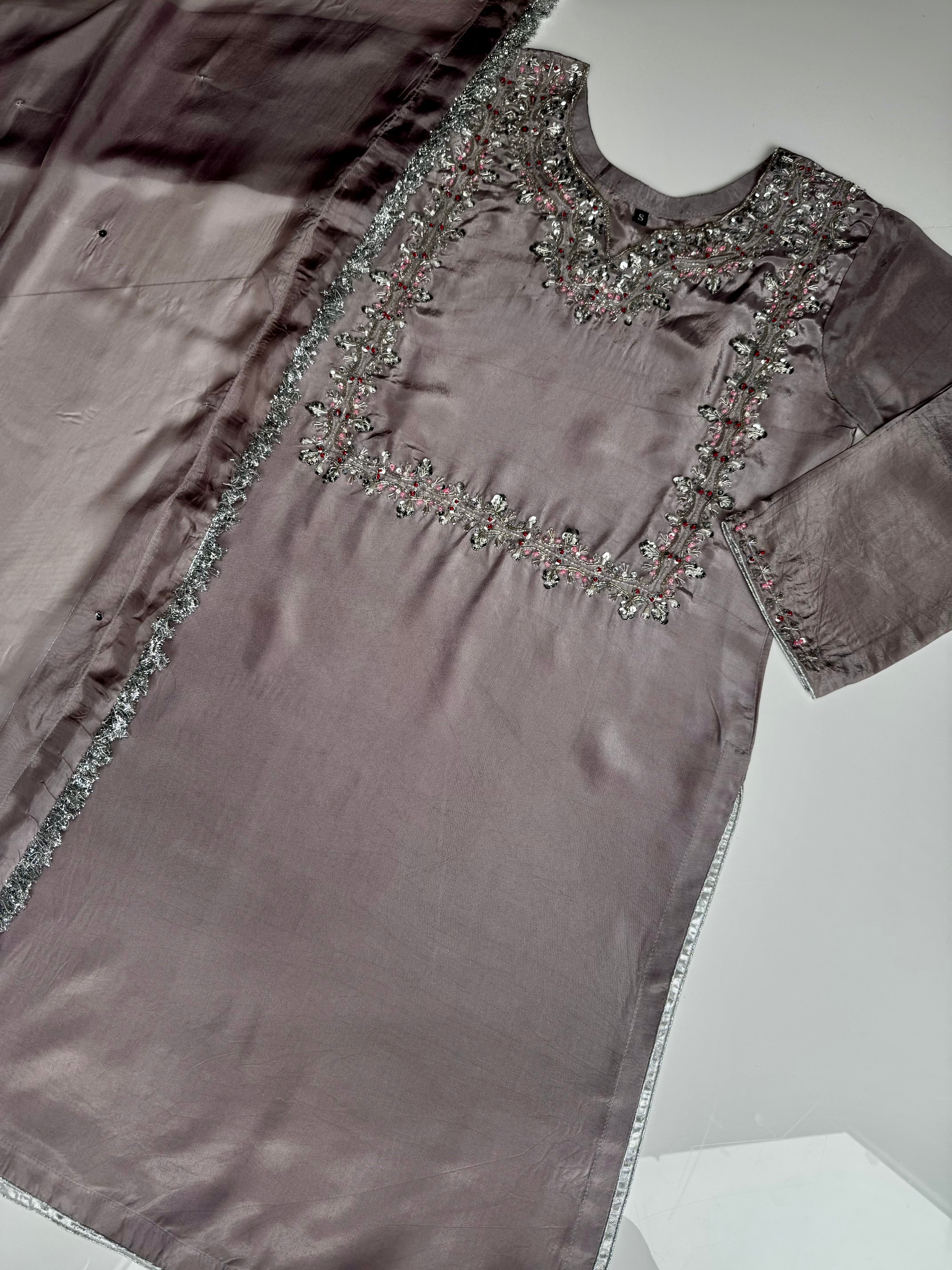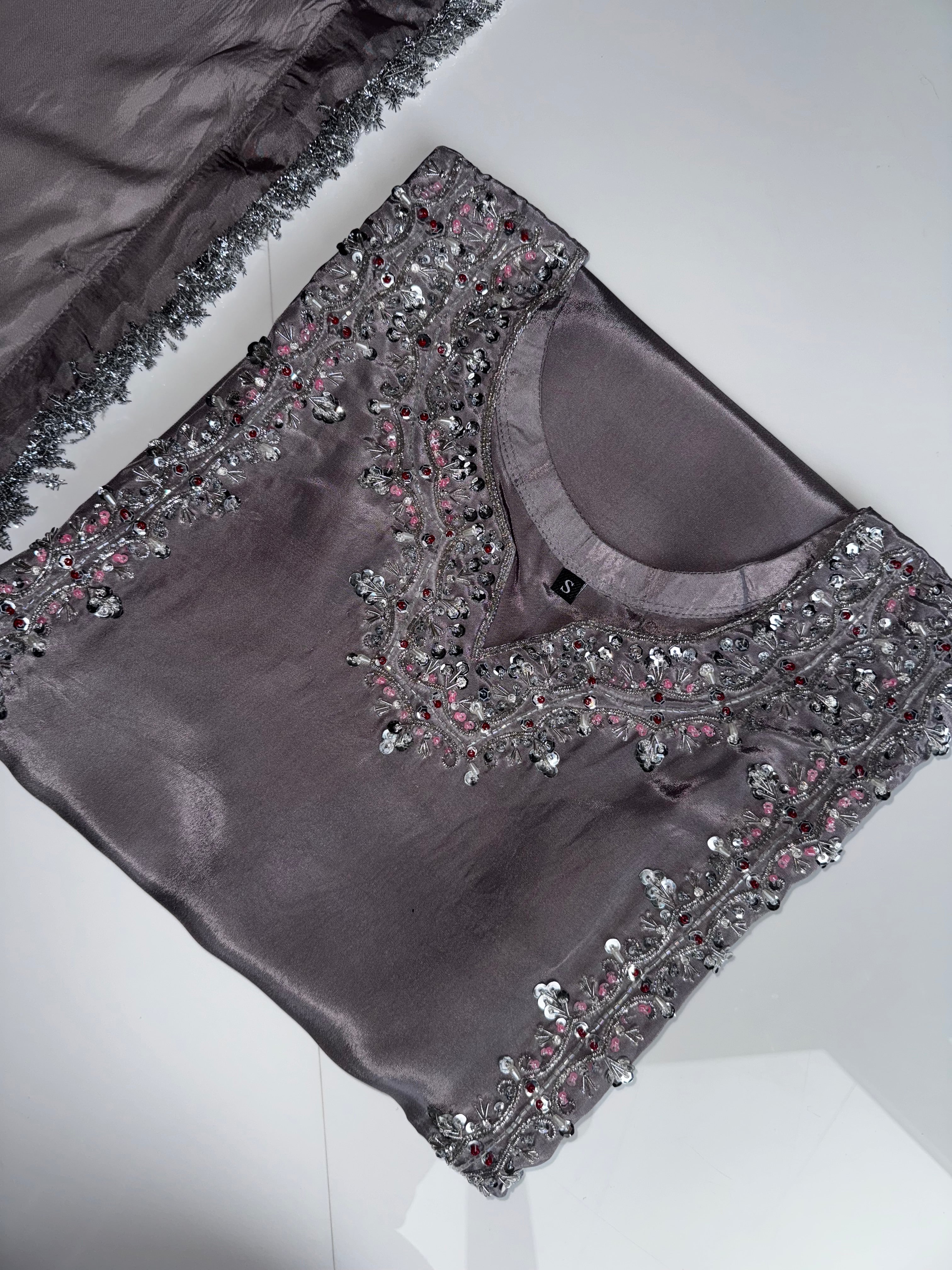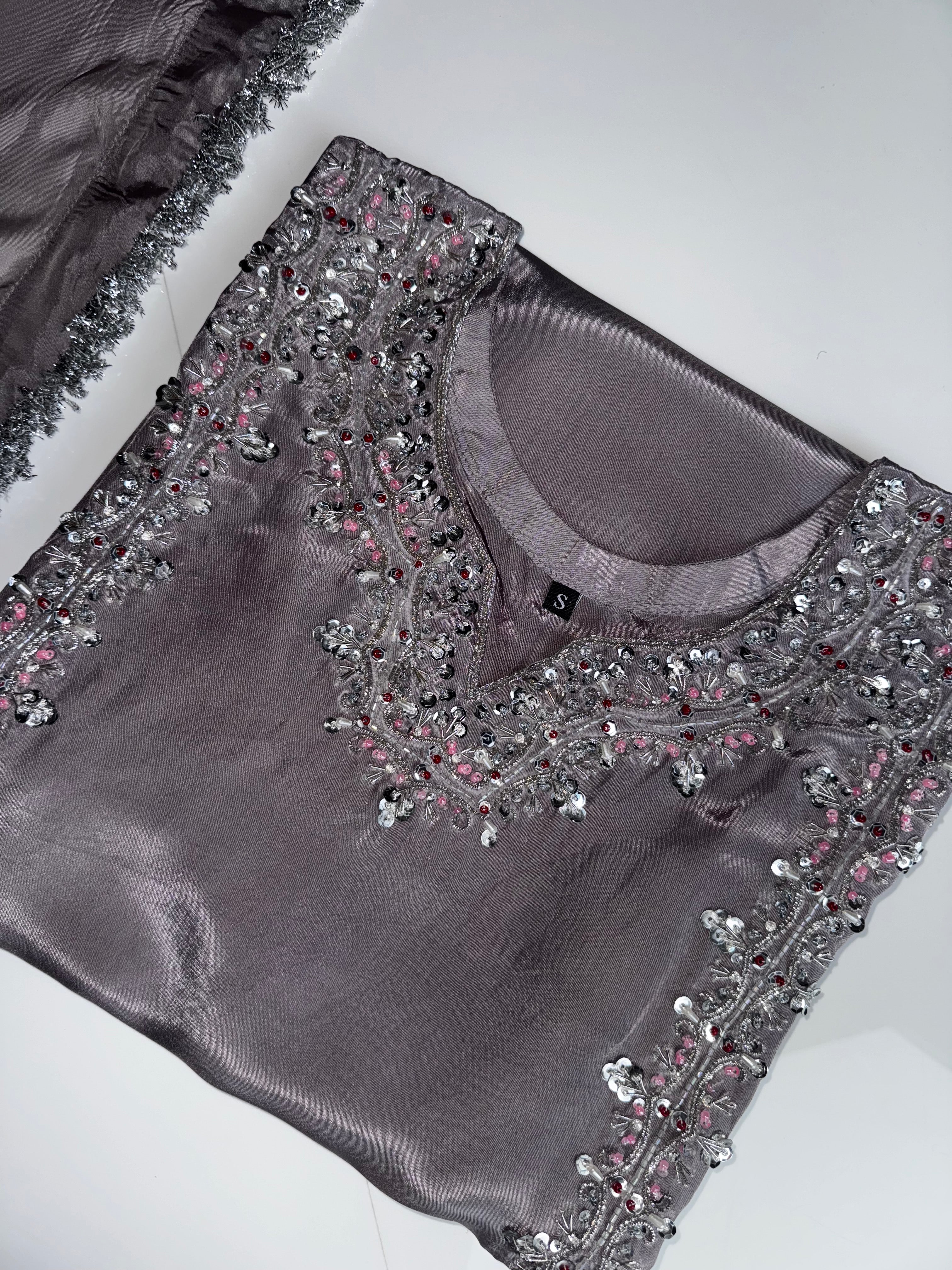 Look stunning in our JIA Outfit, stitched to perfection with detailed handwork for the full top design, including arms. perfect outfit for your formal events.